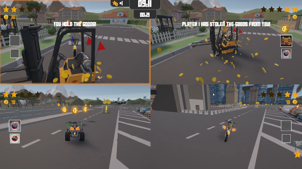 Whenever a new package appears and needs to be delivered, all players race to claim it. The moment a player picks up the delivery, they become the target, every other player will try to steal the package to earn the chance to deliver it themselves. If the delivery does not arrive in time, the customer grows impatient and starts writing a bad review.