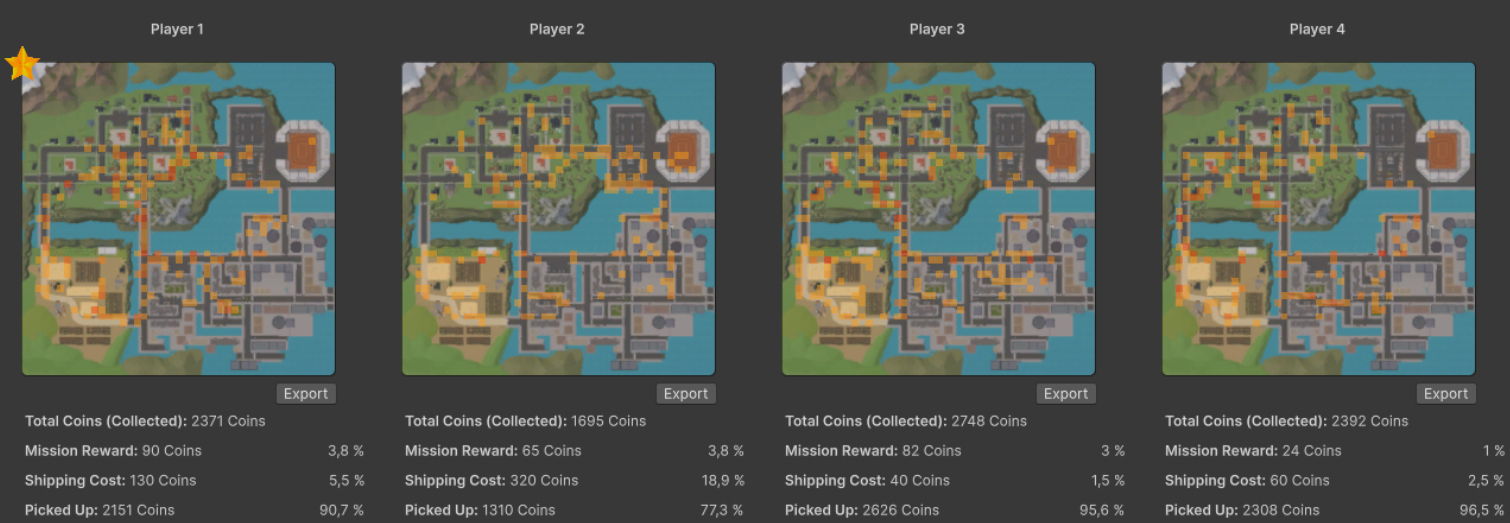 Having access to this level of detail made balancing the game genuinely enjoyable. We could confidently tweak item drop rates, round durations, mission timers, spawn locations, and coin placement, always backed by data rather than guesswork.