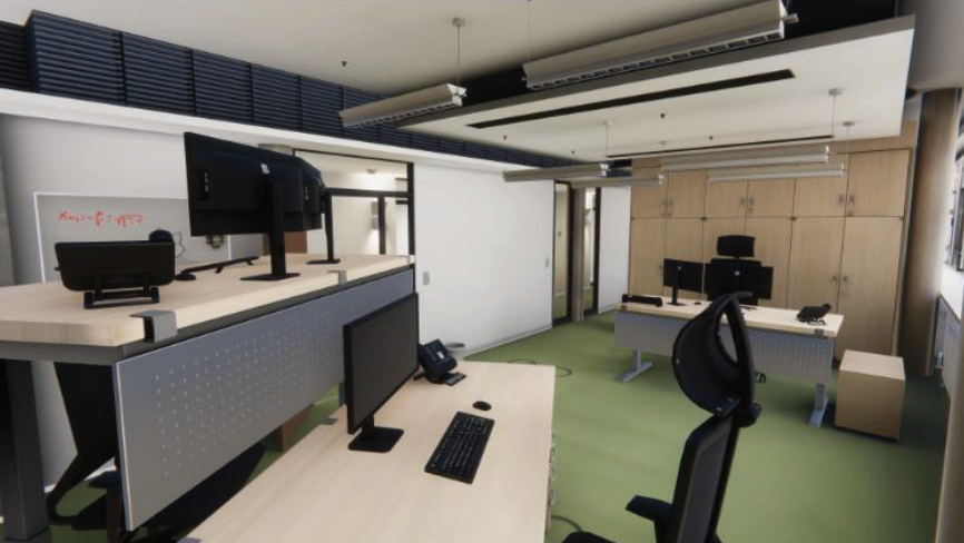 So to start our journey through this almost two year project we visited the office space ourself. And with us we took a lot of meassuring equipment. We meassured everything… from walls to ceilings, insets and desks. We even meassured the phones of the office. We then took pictures of all the objects to extract and recreate textures for our models.